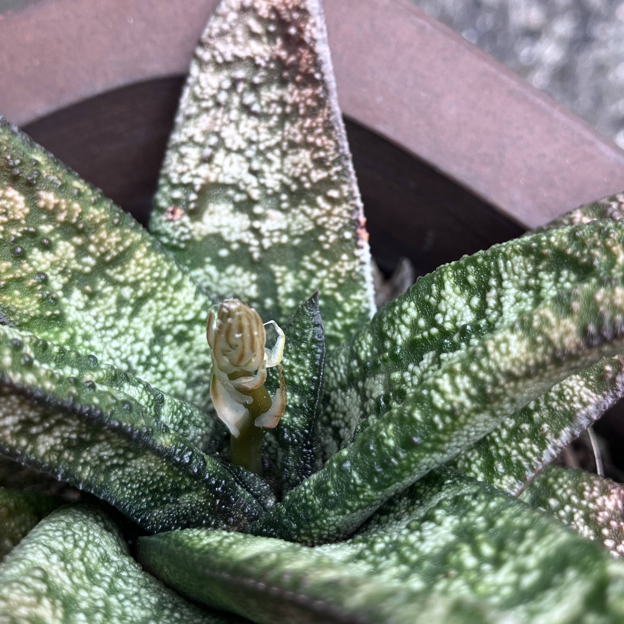 多肉植物ガステリア属のドラゴンスキンにも蕾出てきました