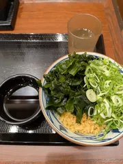 釜揚げうどんのお湯なし、丼でお願いします。安心安定の薬味うどんが頂けます😊今日はお湯なしは湯抜きと言えば良いと学びました😊 今日のレシートガチャは天ぷら50円引きクーポンでした🎯感謝感謝感謝です😊