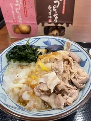 こんにちは、事後報告になりますが早速鬼おろし豚しゃぶぶっかけうどんを食べに6月11日に丸亀さんに行って来ました。梅雨入りした為あいにくの天気でしたが、この日に行く、と決めていたので雨天決行しました。うどん札でとろろを、クーポンでかしわ天を無料で追加して豪華なお昼ご飯にしました。妻へのおみやげ(今回は