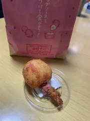 尻尾付きのうどーなつ♡ いちごのディップは天才だ〜!いちごの酸味がちゃんと味わえる🍓とてもおいしいかったです♡