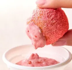 いちごみるく味はディップソースつき! 15日から販売されるうどーなつ いちごみるく味は、パウダーに加えて初めてディップソースが登場するそうです。 いちごみるく味パウダーをまとわせてあるうどーなつに、さらにいちごの果肉入りのディップソースをつけることで、濃厚な味わいと甘酸っぱさが楽しめるみたいですよ。 スタバの「THE