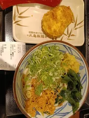 肉! 鬼おろし肉ぶっかけ並(アンケートクーポン100円引き)さつまいも天(うどん札5枚)お肉も食べたいけど丸亀でクーポン使いたい!となり鬼おろし肉ぶっかけいただきました😋甘じょっぱい味付けが最高!😆さつまいも天は今はまっているしび辛+ソースでいただきました。😋本日のさつまいも天もサクホクで大満足でした。😊