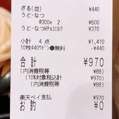 無銭飲食? うどん札10枚貯まったので、ざるうどんを無銭飲食させていただきました!ただ、うどーなつ3つも買ってしまったのでお会計は970円😅