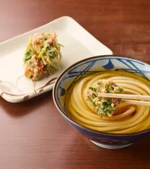 きょう妻は高校時代の部活の同窓生さんたちとのランチ。駅までクルマで送ってくれれば、お昼はお好きにどうぞっていうことだったので、迷うことなく丸亀製麺。食べたのは、推しの「冷たいぶっかけ」の並。そして、天ぷらは今月限定の「三つ葉と小えびのかきあげ」。野菜かき揚げ100円引きクーポンがあったんだけど、1人