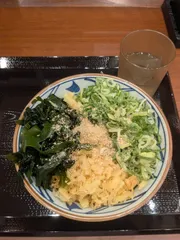 うどん札+無料クーポン うどん札と大根おろしの無料クーポンを使いたかったので。温かいぶっかけうどんに大根おろしをトッピング。無料トッピングで5種類使って。大根おろしが甘くて美味しかったです🥰