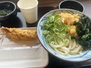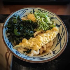 麺が見えないくらいトッピング。 丸亀ならではの楽しみですよね。 わかめ無料嬉しいですね。