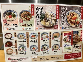 本日丸亀製麺に行って一番びっくりしたのが!山菜うどん期間限定復活〜パチパチ👏 山盛りあさりも気になるし明太クリームも気になる! そこに山菜うどんと釜玉うどん無料まで加わって丸亀マジックにハマってしまう〜今月も通いますか〜