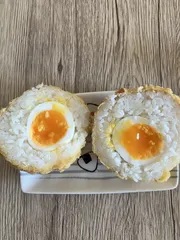 元気玉! 家🏠へお土産で買って来ました。半熟玉子が美味しそう🤤塩と天丼のタレで食べてました。