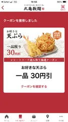 元気玉おむすび天ぷらコーナーにあるのでもしかして参加賞の天ぷら30円引きクーポン使えるのどうか半信半疑でしたがちゃんと使えました👏元気玉おむすび30円引きクーポン使っても釜揚げうどん並と同じ値段なので積極的には注文出来ないですね🐉