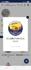 4月4日に緑🟢のネギてんこ盛りバッジ📛をいただいてからそんなに間が開いていない本日...バッジ📛が3個届きました✨運営さんありがとうございます🎶先ずは『肉がさね玉子あんかけうどん』寒い時季にお世話になりました♪美味しかったです✨また冬にお会いしたいです🖐️次は『だし玉🍖づつみうどん』全体に甘めの味
