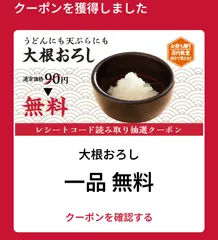 当たり🎯 うどん札を使ったレシートで無料クーポンをもらいました。ダブルの幸せ有難うございます😊
