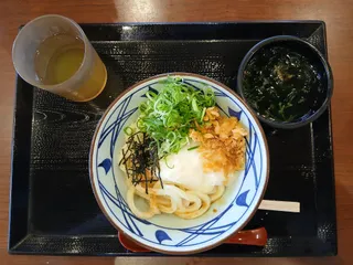 とろろ醤油うどん+わかめスープ とろろ醤油うどんにネギと天かす、ゴマをトッピングうどんダシにワカメとネギとほんの少しの生姜を入れたスープだし醤油はしょっぱくなくて美味しくて、少し多めにかけてしまいますスープに入れた生姜がよくきいてとても美味しかったですまた同じ組み合わせで飲みたいと思いました