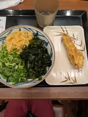 鴨ねぎうどんのトッピングを食べたので出汁サーバーで出汁つゆ・天つゆ投入し🐢ネギ・わかめ・天かす・生姜・七味を入れかけうどんに変更しその後しび辛ラー油を入れ辛かけうどんにして食べました😙〆用にメンマにしび辛ラー油・🐢ネギを入れ、わかめ・🐢ネギにわさび出汁醤油を入れおつまみ小鉢を作りました🤤メンマは無料