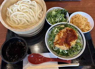 今日の丸亀 無事に釜揚げうどんも食べました。かけうどんにするべきだと気がついたのは、座ってからです…