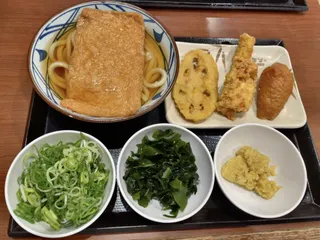 2025/10/16今日の夕ごはん 会社帰りに奥さんから📱があり「ご飯どうする?」とのことで、迷わず近所の丸亀へ。うどんはきつねの並に、相性の悪いかき揚げを避けて、かしわ天、れんこん天、いなりの揚げ揚げをチョイス。奥さん、『今日のれんこん、冷たいからつゆに浸したほうがいいよ』と、れんこん天も残念なことに冷たかったんです、負の連鎖はいつ