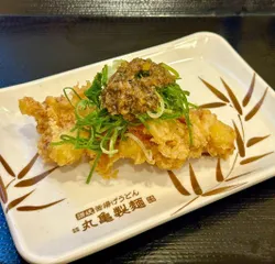 定番 ぶっかけに大根おろし、わかめとネギ多めかしわ天もいい