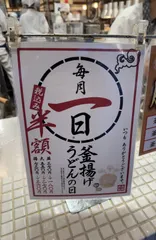 毎月1日は釜揚げうどん! 毎月1日の釜揚げうどんの日で激混み!うどんは茹でたてで美味でした!