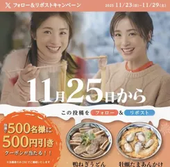 鴨ねぎうどんも牡蠣たまあんかけうどんも食べたい!フォロー&リポストキャンペーンは29日まで。