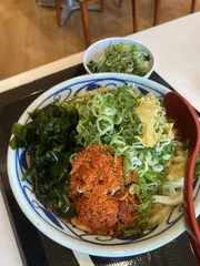ふらっとお店に寄ったら秋刀魚天ぷらがたくさん積まれてて、びっくりして頼んじゃいました🤣 うどんは安定のかけうどんです🙆 まさか丸亀製麺で今年初秋刀魚を食べるとは思わなかったですが、とっても美味しかったです🎉(ワカメが枯渇してたのがちょっと残念でした🤣)