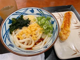 2025/10/5今日の夕ごはん 奥さんと夕ごはんを食べに近所の丸亀へ。 前回のレシート🧾のQRコードで、野菜のかき揚げ100円引が当たったので利用しました。野菜のかき揚げ、かしわ天、いなりをチョイス、今日の天ぷらは温かったですよ。うどんはかけ並にわかめ、しょうがだく、ネギ天かす少々。奥さんは釜揚げをチョイス、これが一番美