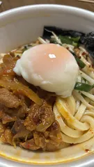 『親子うどん』 単なる『釜玉うどん🥚』と『かしわ天🐓』です。なかなか『釜玉うどん』を食べることは無いのですが、時折食べたい気分になる時があり、今日がその時でした😊🍜出汁しょうゆ掛けて食べたのですが、掛ける量がいまいちわからずで、なんとなく卵のマイルドさに負けてしまった感じです💧わたしの出汁しょうゆのさじ加減の問題か