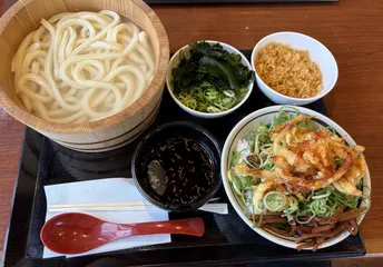 釜揚げうどんにイカ天、ちくわ天の 組み合わせも良いですね☺️✨