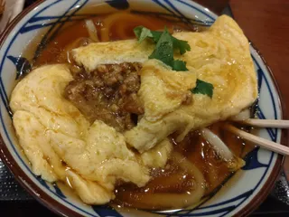 丸亀調味料たっぷり わかめにはだし醤油、天ぷらには天丼のたれをたっぷりかけて食べるとめちゃくちゃおいしいです。