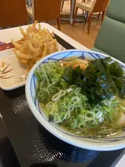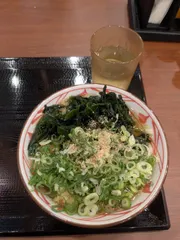 ♪別の機会の楽しみに♪ ぶっかけうどんをいただきました🥢 わかめと天かすのトッピングもなかなかの美味でした♪ こちらはうどん札×10枚で無料だったので、とてもありがたい🙇♂️ 丸亀製麺は自分1人の時だけでなく、家族揃って一緒に食事する機会もこの夏は多かったので、うどん札が貯まるのもいつもより
