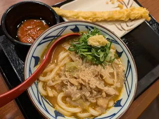 今年最初の丸亀製麺 今年最初の丸亀製麺は、海老天とカニのたまごあんかけだーー❗️❗️❗️ 細竹天だと…ネギもいっぱいいれて…美味しかったーー❗️❗️