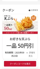 当たりました🎯 昨日のレシートクーポン天ぷら50円引き当たりました🎯