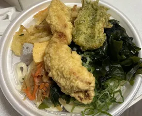 お持ち帰り 帰宅が遅くなりかしわ天うどん弁当とうどーなつの持ち帰り。 うどーなつは夕飯済ませたこどもへのデザートのつもりでしたが、3個残してくれました♪増量分が私の取り分に🥳美味しかったー