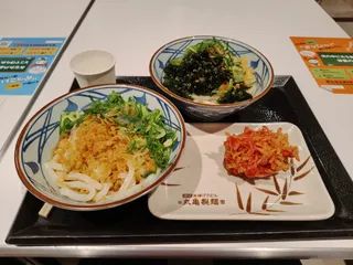 丸亀行ってきました〜👍ぶっかけうどん一杯無料😍トピわかめとねぎ&天かす➕ラー油のダブルで楽しみました‼️美味しゅうございました✨仙豆は終了してました😱残念😢ステッカーはコンプリートならず😭でも丸亀最高✌️うまし🤩🤩🤩