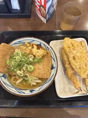 丸亀のきつねうどんって美味しいよね どうしてもきつねうどんが食べたくて来店天ぷらもいっぱい食べれて幸せです😀😀