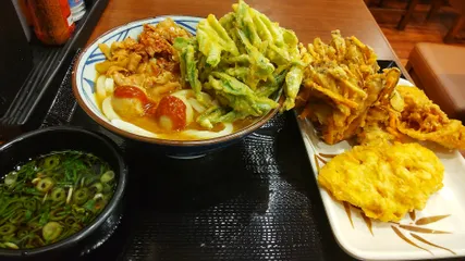 旨辛de腹パン 丸亀製麺富士厚原店でランチ旨辛肉盛りニラ玉ぶっかけうどんを味わいましたもちろん大盛りにして、うどん札でトッピングとろろも付けて期間限定ごぼう天もついでに…無料トッピングコーナーのネギ、わかめ、しび辛、しょうがは私のマストアイテムです