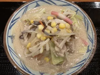 間もなく終了となる豚ちゃんぽんうどんを最後に食して来ました〜😃 大好きなうどんと大好きなちゃんぽんがコラボコレ絶対に美味いヤツ決まってますね〜 具だくさんだけになかなか麺まで辿り着けない。特に豚の量が半端なく食べても食べても豚来襲〜麺ももっちもっち〜スープも熱々〜寒い日に身体も心