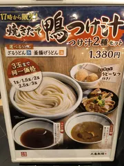 お値段見るとビックリすると思いますが3玉同一価格で丸亀製麺でつけ汁2種は初めての経験なので味変いっぱい楽しめました🥺17時から販売開始なので鴨ネギなどがおつまみになっちゃいそうです🍻 食後の甘いうどーなつ最高でしたので2個前後の少数販売期待したいです✨