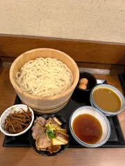 店舗限定になりますが焼きたてつけ汁2種セット食べてきました🐢つけ汁がぶっかけ出汁と、カレー出汁がついて焼きたての鴨ネギにうどーなつ2個が着いた豪華なセットメニューになってます😋 やっと味付き細切りメンマに出会えて嬉しかったです😍