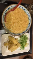 アツアツ牡蠣たまあんかけ🦪 牡蠣たまあんかけ食べました! 写真撮る前に一口程度いただいちゃいましたが美味しさ伝わると思ったのでセーフ!💦 牡蠣たまの白ネギが私好みで玉子あんかけと合う❤️ 牡蠣もいい食感で美味しかったです! 丸亀さんってアツアツのおうどんを提供してくれるのでポカポカしてい