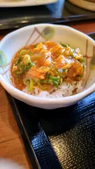 トマトカレーうどんに一口ご飯が付いてました🎶一口カレーの出来上がり!美味しい締めでした✨