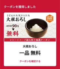 大根おろし無料 大根おろし無料のクーポンをつかって大根おろし無料のクーポンが出ました嬉しいです😊✨️