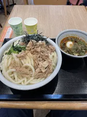 ギリセーフ⁈💦 昨日やっといただきました。旨辛豚つけ汁うどん 3玉念願でした😀めっちゃ美味しいし、3玉ペロリでしたあの旨辛つけ汁は中毒性有りですねご馳走様でした