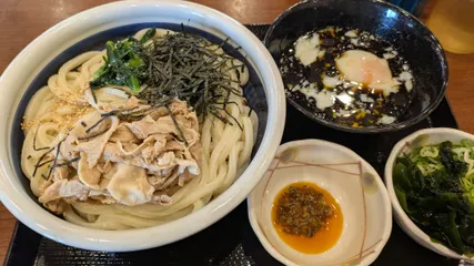 うどん札アンケート回答で貰えるうどん100円引きクーポンいつも月初に獲っていたが完全に忘れていた🫢 獲得したので何うどんにするか🤔 新メニューの旨辛 肉盛りニラ玉ぶっかけうどんか旨辛 豚つけ汁うどん3玉か最近食べていないカレーうどんにするか🤔 いつもかけうどん小ばかり注文しているので違ううどんにしよ