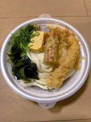 今日は午後から再登場したシェイクうどん買いに行きましたが残念ながら売り切れで変わりにえび天と定番おかずのうどん弁当を購入しました🍤 温かいうどん弁当が販売開始してから初めて購入しましたがかけ汁がこぼれないようにうどんと天ぷらがのってる容器が見事に蓋になって良く出来てるなと感じました👏大晦日