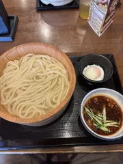わが町シリーズの温玉じゃじゃ麺つけ汁見た感じつけ汁の味が濃そうですが釜揚げうどんに絡めて食べるといい感じになるんでしょうね🤗 きゅうりと温玉も入って豪華なつけ汁です✨ 他の方の投稿にspringさんにお勧めしたい釜揚げうどんの日限定のカツ丼セットがあるようですね🍚