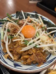 肉ニラ玉ぶっかけ❤️🔥 ニンニクが効いてて最高今日も丸亀のうどんは美味しかったです🐢✨