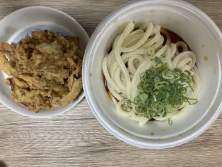 2025/10/3今日の夕ごはん 夕ごはんに奥さんと近所の丸亀へ。閉店間際にもかかわらず、盛況でした。 秋刀魚天、かしわ天、いなりをチョイスして。うどんはきつね並にネギ、ワカメに天かす、しょうがが少々。昨日、上司と行ったランチとほぼ同じものでしたね。クーポンを利用して100円引に、美味しくいただきました。