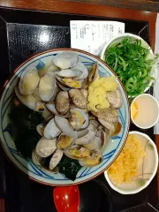 豚天ぶっかけうどん🥢 豚天ぶっかけうどんまた食べたくなったのでリピートしてきました🐷 丼からはみ出る豚天3枚も入ってて豚天柔らかくて美味しかったです😋 こちらのお店ではネギ、天かすコーナーに無料でわかめが置いてありうどんに入れてわかめうどんにして食べて有り難いサービスだなと感じました😀おまけにラー油ま