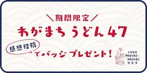 10/21から期間限定!「わがまちうどん47」の感想投稿でバッジプレゼント!