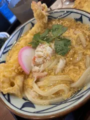 今年も年明けうどんを頂きました😋無料トッピングはマストで。 「大海老天」と「本ずわい蟹」、ふわふわな玉子あんかけだしが美味でした! この玉子あんかけだしは、14日以降の肉がさね玉子あんかけに引き継がれるのね。