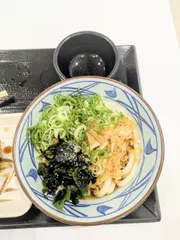 釜揚げうどんのお湯なし、丼でお願いします。安心安定の薬味うどんが頂けます😊今日はお湯なしは湯抜きと言えば良いと学びました😊 今日のレシートガチャは天ぷら50円引きクーポンでした🎯感謝感謝感謝です😊